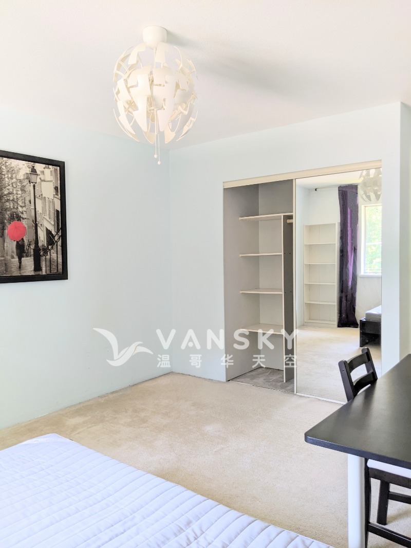 | 详情描述 地点好! 最近SFU唯一市中心. 唯一3条天车线交汇处*真正的四通八达* *步行5分钟Lougheed mall Walmart PriceSmart各大超市餐馆快餐图书馆社区中心天车Skytrain公车总站等应有尽有. *步行1分钟bus公车站(**晚上+周末都有公车**), 公车bus去SFU,FIC超级方便. 独立出入! 光照好. 十尺高屋顶2米大窗. 独立厨房洗衣干衣大阳台等一应俱全. *楼上二楼漂亮舒适超大单房出租: 双人大床/大书桌/大书架/大衣橱等等*新家具*非常齐全! *与一个sfu男生共用宽敞带淋浴和浴缸的大卫生间! 适合无烟宠麻. 诚意短信介绍你自己.