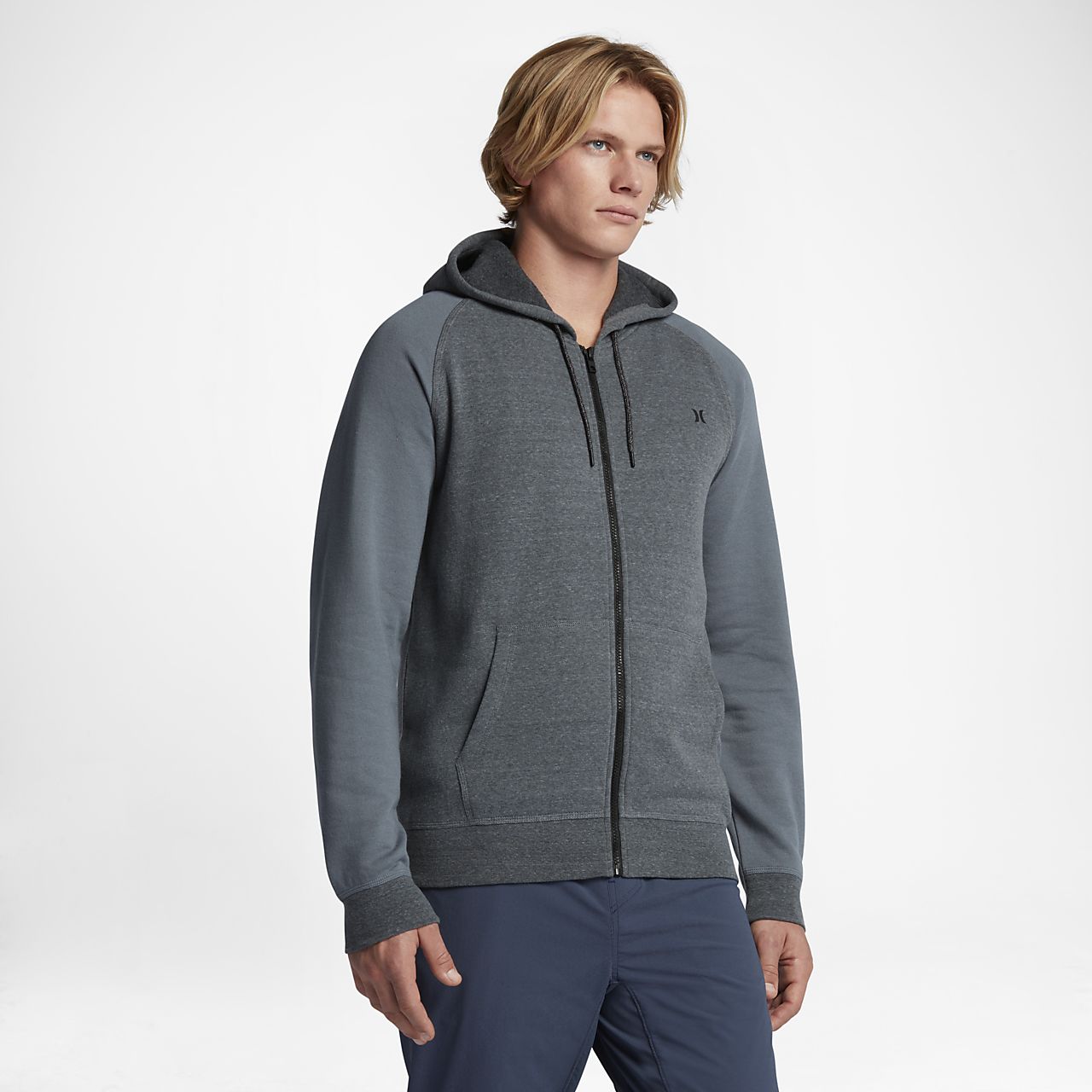 The Hurley Bayside Zip Men's Hoodie features fleece fabric for a soft, comfortable go-to whether you're going to and from surfing or spending the day outdoors.