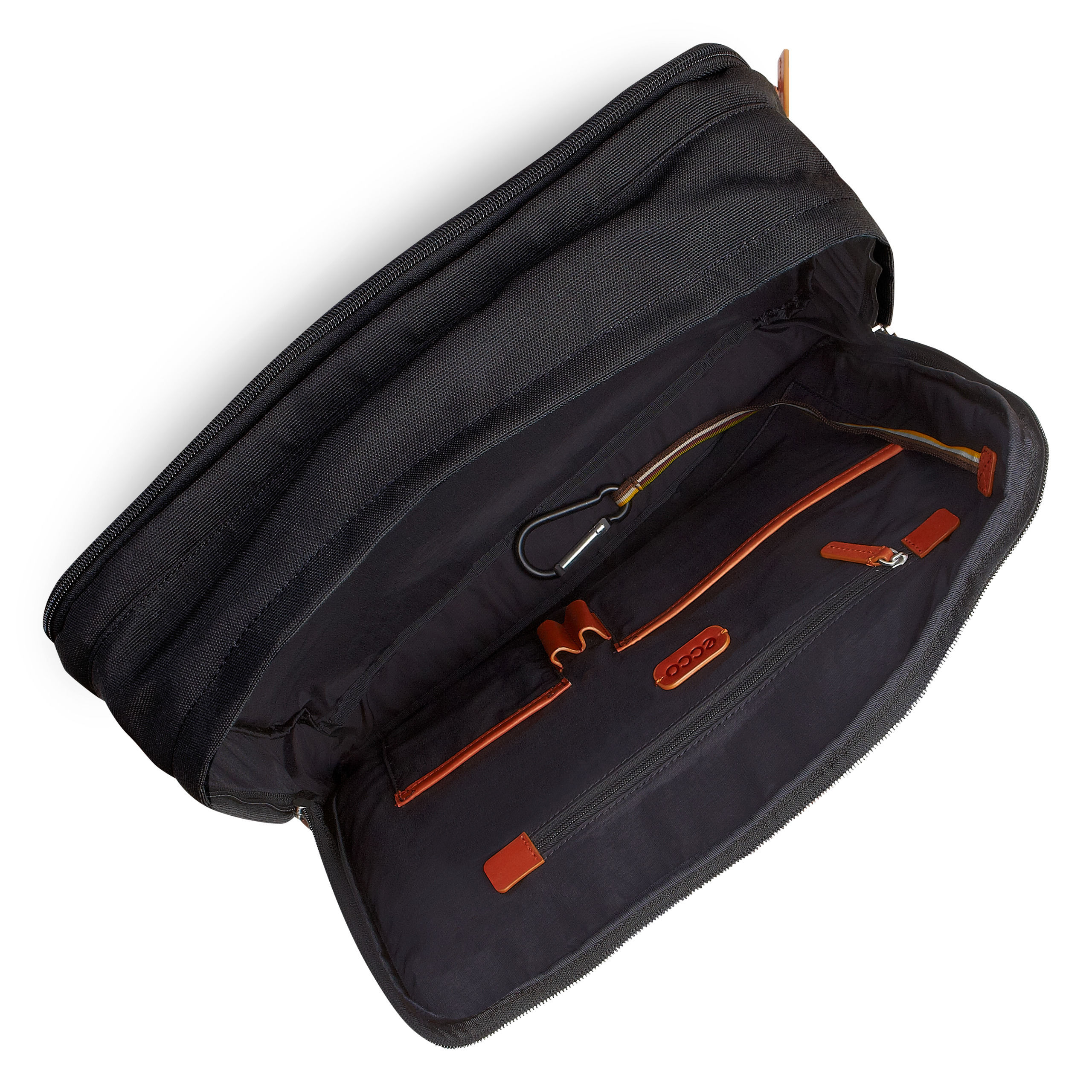 - Outside zip pocket, backside trolley sleeve, 2 zipped compartments, several pockets, pen loops and a keyring strap