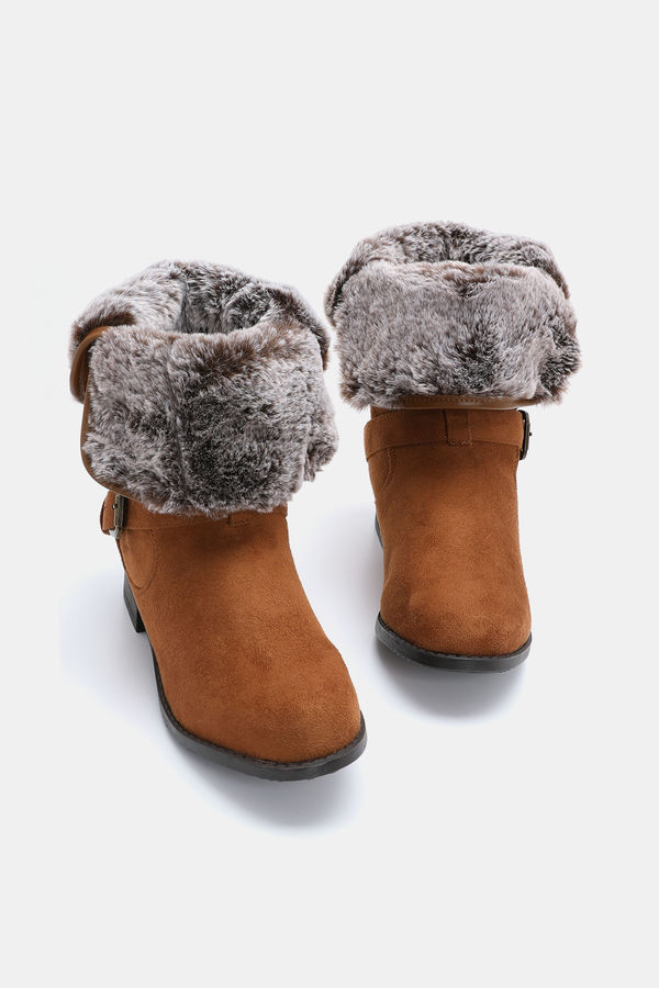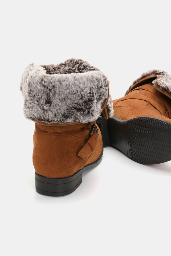 Microsuede winter ankle boots with folded collar. Faux fur lining. Water and stain repellent. 3M Thinsulate insulation.