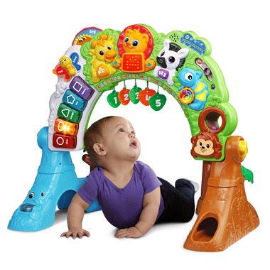 - Keep your child entertained and learning with an interactive arch that adjusts to grow with children from sitting to crawling to standing