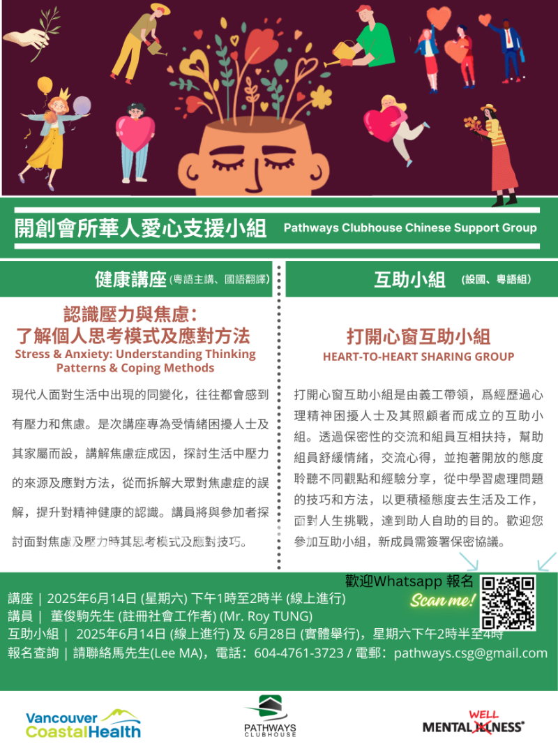 請聯絡馬先生 (Lee MA),電話:604-761-3723 (可語音留言 / WhatsApp留言)或 電郵:pathways.csg@gmail.com。