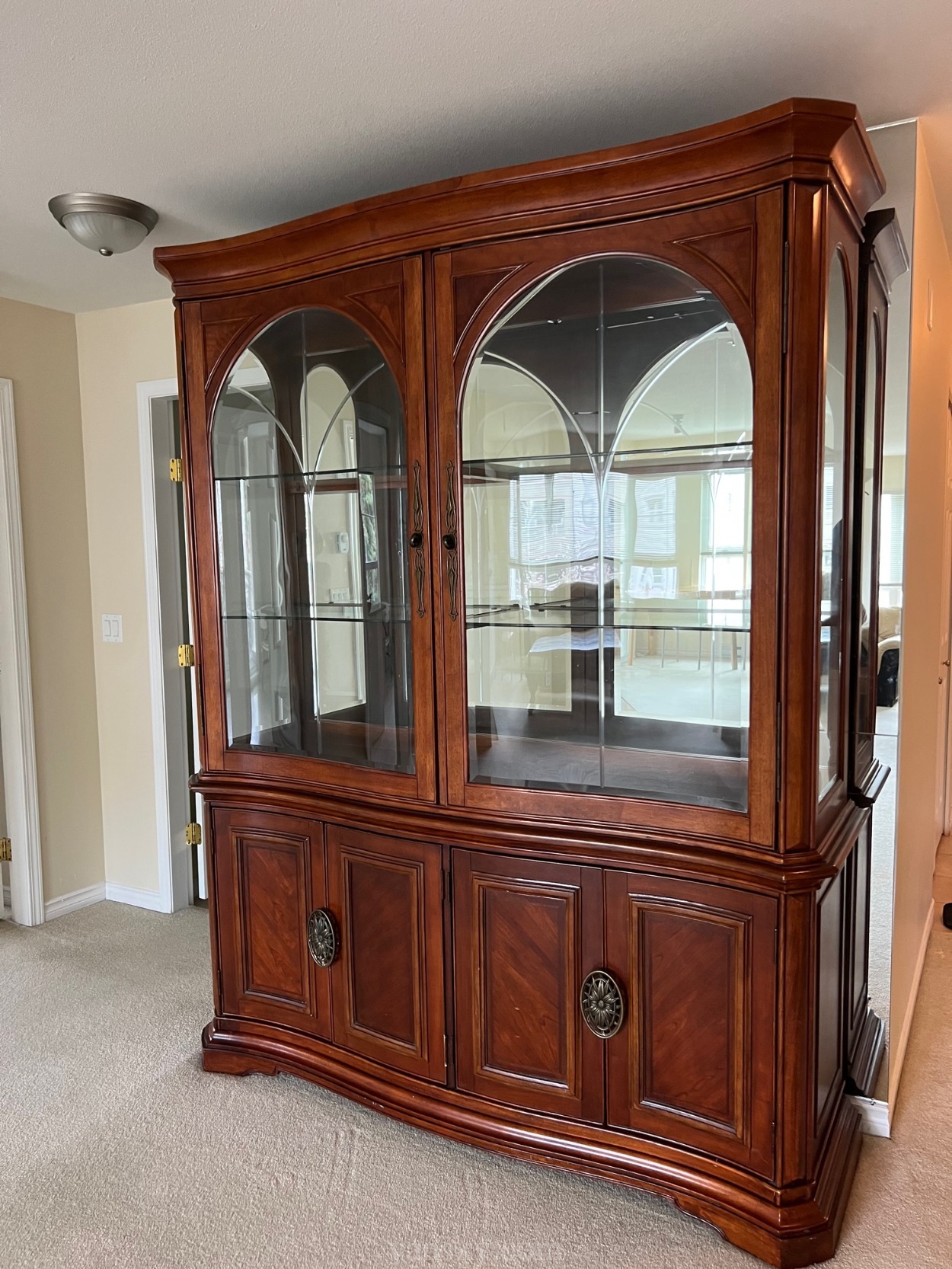 搬家甩卖!棕色实木餐厅边柜(内置展示灯)现降价仅售 $480,3年前购入时价格 $1,200 + 税。保养如新,状态极佳!如有需要,可协助送货。短信联系:(604)239-7663