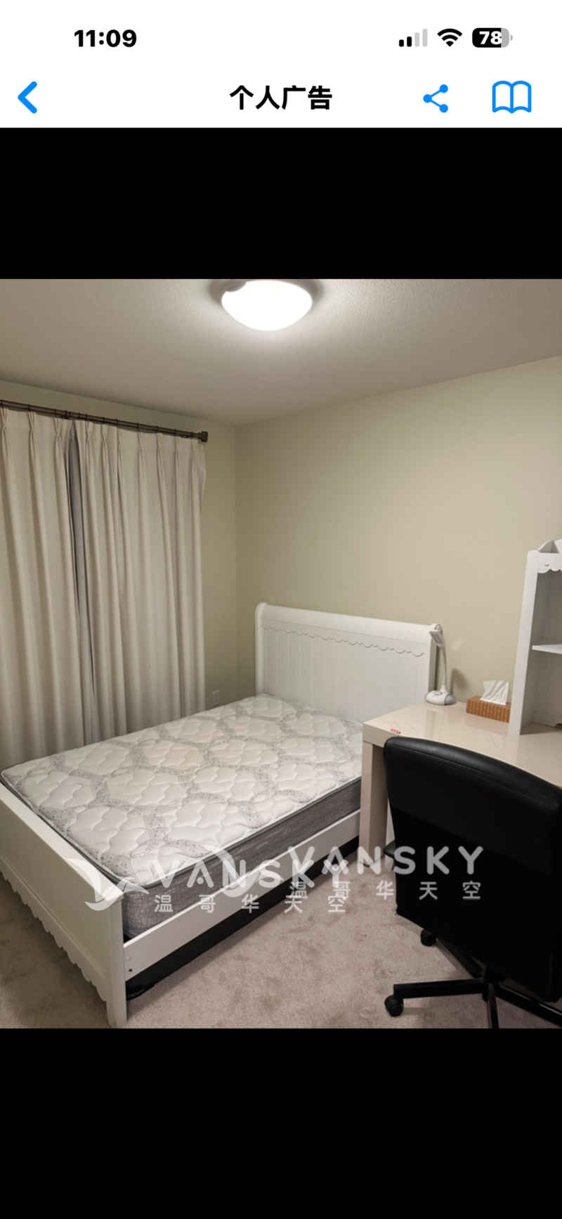 | 详情描述 独立屋内一室一厅出租。 位于Blundell上近一号路,五分钟步行至公交车站和杂货店。单独出入。独立厨房和卫生间,水电网暖气全包,院内有停车位。寻无烟无麻、少煮食、爱干净租客。室内标准装修,配备家具,即日起可以拎包入住。欢迎随时看房。联系 7787882888 微信: godernbear9888 | |