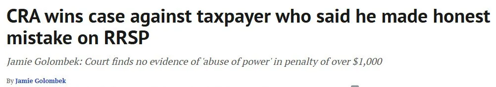 你也许是最诚实的纳税人,几十年来每年按时提交报税表,从未拖欠过加拿大税务局(CRA)一分钱。但如果你在向注册退休储蓄计划(RRSP)缴款时犯了“一个无心之过”,这些好记录可能都无济于事 —— 正如一位纳税人最近所经历的那样。