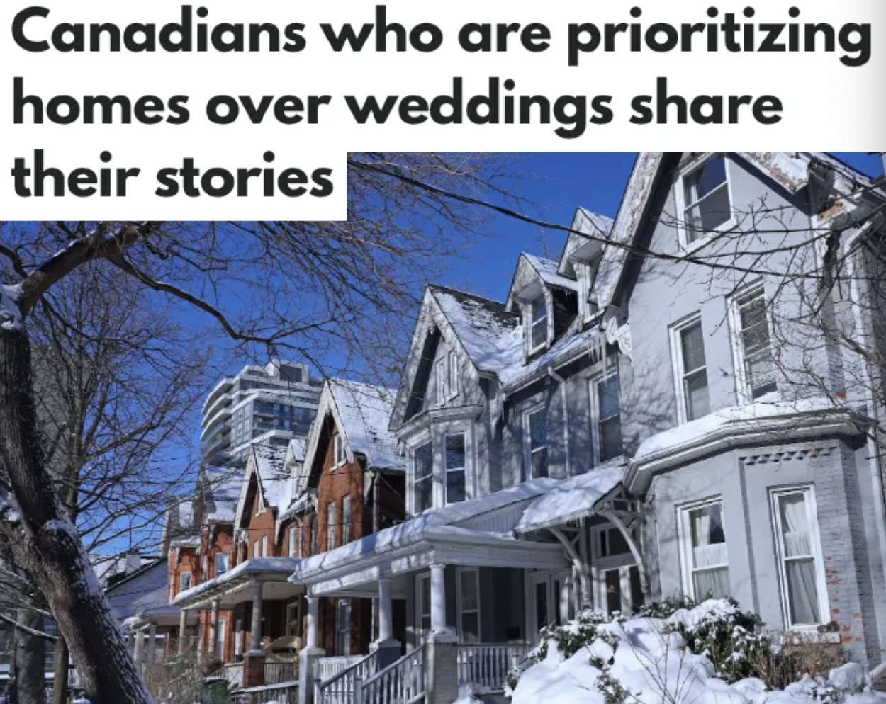 面对如此高昂的房价,一些人选择将可能用于婚礼的 30,000 加元花费转而用在购房上。