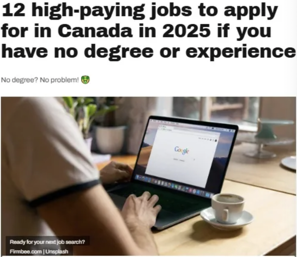 不需学位或经验 2025年加拿大12个高薪工作