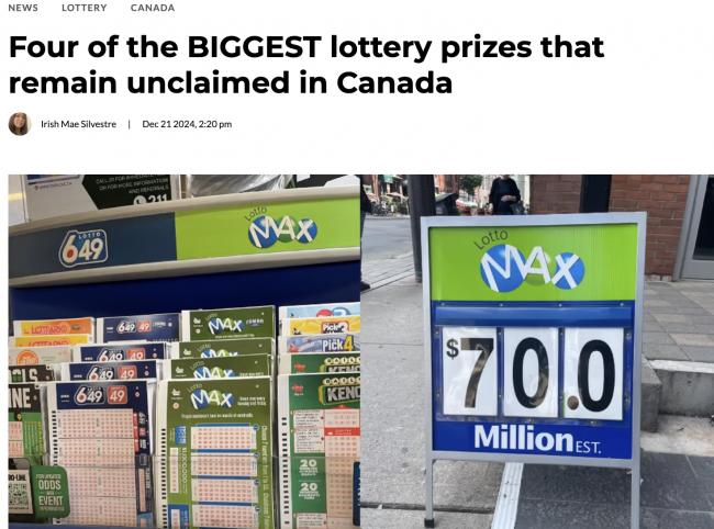 有意思的是加拿大这种事儿还真就一而再、再而三的发生——买彩票中了大奖却不来领钱,目前累计奖金金额都已经超过上亿加元。