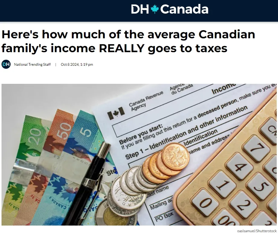 弗雷泽研究所(Fraser Institute)于 7 月发布了 2024 年版加拿大消费者税指数。这份最新报告指出,去年普通加拿大家庭在所有形式的税收上花费的收入(43%)超过了食物、住所和衣服等基本必需品的总和(35.6%)。