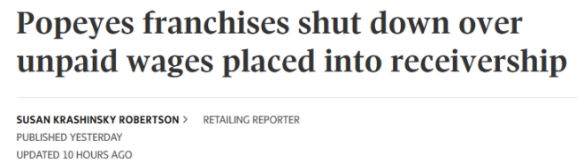 一家Popeyes Louisiana Kitchen的加盟商,其餐厅在上个月因员工提出拖欠工资的指控而被关闭,现在他名下的多家公司已被接管,总债务约为1080万加元。 提交给法庭的文件和公司记录搜索显示,这位前餐厅老板Irfan Memon也是去年五月针对Popeyes、其母公司Restaurant Brands International Inc.以及多伦多地区加盟商提起的诉讼中的主要被告。 图源:Galit Rodan/The Globe and Mail Memon先生控制的公司运营着该诉讼中列出的27家分店中的7家。在这起诉讼中,Popeyes的前禽肉供应商ADP Direct Poultry Ltd.指控这些餐厅从未经授权的供应商处购买了“不安全”的肉类。这些指控尚未在法庭上得到证实,Restaurant Brands最近在七月表示,他们没有发现这些说法的证据。 该诉讼中提到的7家餐厅,连同总共14家公司(每家公司经营一家Popeyes分店),现已被置于接管之下——这一程序允许将资产清算以偿还公司债务。 提交的接管文件显示,在ADP提起诉讼后不久,Restaurant Brands就开始向Memon先生的公司提出关于餐厅从何处购买肉类的疑问。 在9月18日发出的特许经营协议终止通知中,Popeyes指出,他们早在六月就告知Memon先生的公司,餐厅从经批准的供应商处购买的鸡肉数量与他们售出的鸡肉数量之间存在“重大差异”。通知称,该加盟商未能就这些差异提供“充分或令人满意”的解释。 Restaurant Brands的发言人Emily Ciantra在一封给《环球邮报》的电子邮件声明中写道,尽管该公司坚持ADP诉讼中的指控“是他们在因正当理由失去我们的业务后发泄情绪的例子”,但公司仍决定检查所有加盟商六个月内购买和销售鸡肉的记录。 这份终止文件还披露了对Memon先生其中一家分店的食品安全担忧,该分店位于多伦多3591 Sheppard Ave. E.。该公司在五月发出了违约通知,指出该餐厅存在“啮齿动物活动迹象”。 Ciantra女士写道:“在极少数情况下发生类似事件时,餐厅会立即关闭进行深度清洁,并且只有当我们确信已采取措施避免再次发生后,才会重新开业。” 她补充说,当母公司向加盟商发出违约通知时,通常会给他们一段短时间来解决问题。 终止文件显示,在九月员工在Memon先生拥有的多家分店举行抗议之前,Popeyes早已知晓拖欠工资的问题。Popeyes在今年一月向Memon先生的公司发出了违约通知,原因是“重复性地未能在到期时支付员工欠款,且持续时间超过两个月”。 Ciantra女士写道,在Restaurant Brands一月发出通知后,Memon先生曾告知他们已向员工支付了工资,并承诺解决问题。但问题在秋季再次发生,这是终止协议的另一个原因。 图源:Galit Rodan/The Globe and Mail Memon先生公司的贷款人Meridian Credit Union Ltd.于10月8日提交了接管申请,并于10月10日获批。代表Memon先生公司的律师没有回应置评请求。 Meridian一直在与该加盟商和Restaurant Brands合作,计划将这些餐厅转售给新的运营商。 Meridian的商业信贷专家Ramune Beattie在10月9日签署的宣誓书中称,Memon先生名下的几家公司此前曾试图出售这些餐厅,并于今年五月签订了购买协议。但这些交易“因各种原因”告吹。 九月,Memon先生和他的公司与Meridian达成协议,承认拖欠了贷款,并请求时间出售餐厅,以便在10月31日前偿还债务。但随后在九月下旬,Popeyes终止了其中13份特许经营协议,房东也开始采取步骤终止租约。 位于多伦多东区85 Ellesmere Rd.的一家分店仍在营业。Ciantra女士写道,该分店的加盟商是Memon先生的妻子,Memon先生本人并未被列为加盟商。然而,在公司文件中,Memon先生被列为运营该分店的公司的董事,而且它也是现在被接管的14家分店之一。因此,该公司预计这家餐厅在不久的将来也会关闭并出售给新业主。 接管申请称,在餐厅停止运营并被“遗弃”后,接管程序是维护资产价值所必需的。因为现场留下了易腐烂的物品,有变质的风险,这危及了出售给新加盟商的前景。 房东已告知Meridian,这些公司违反了租约,并对冰柜和冷藏柜中因断电而留下的食物表示担忧。Beattie女士的宣誓书指出,Memon先生的公司“未能使抵押品保持良好状态和进行维修”。 终止通知规定,这些加盟店无权继续使用Popeyes商标。通知指示他们立即停止餐厅运营,支付拖欠Popeyes的所有款项,退还包含商业秘密的餐厅手册和其他材料,并“去品牌化”,使其不再与Popeyes相关联。