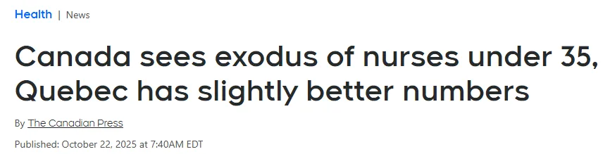 根据蒙特利尔经济研究所(MEI)周三发布的一份新报告,加拿大在留住年轻护士方面遇到了大麻烦。报告显示,每年选择离开这个行业的35岁以下年轻护士人数,跟新入行的人数相比,比例正在不断增加。   图源:CTV News   到底有多严重?   在2023年,全国范围内,每新招进来100个35岁以下的护士,就有40个人离开了这个行业。   在魁北克省,数字稍微好一点点:每新进来100个护士,有37个35岁以下的护士在2023年选择不续签执照。   全国趋势:离开的人越来越多了   倒回十年前,魁北克省还是每100个新护士流失40个。   报告作者、MEI经济学家Emmanuelle B. Faubert解释说:“看看全国的趋势,在2014年,每100个35岁以下新入行的护士,有36个没再注册;而到2023年,这个数字升到了40个。”   她承认:“虽然有些省份最近有所改善,但全国总体的趋势还是在上涨。”   她的分析是基于加拿大健康信息研究所(CIHI)收集的、各省最新的执照申请数据。   数据小插曲:跨省流动不算流失   Faubert特意指出了一个数据上的小细节:有些护士如果拥有第二执照,可以在两个省执业。   CIHI的数据只统计他们居住地的执业执照。   Faubert说:“举个例子,一个护士从魁北克搬到安大略省工作,对魁北克来说是流出,但对安大略省来说是流入。所以,从加拿大全国层面来看,这个数据是持平的,没有影响。”   学习榜样:BC省模式值得借鉴   Faubert认为,要更好地留住护士,必须改善他们的工作条件。   她说:“把人吸引来之后,我们得确保给他们提供能让他们留下来的工作条件。这才是最关键的。光把人招进来不够,还得留得住。怎么做到呢?我们可以看看BC省(不列颠哥伦比亚省)的做法,他们的模式非常值得参考。”   报告显示,2023年,BC省年轻护士流失率是全国最低的,而且他们在吸引和留住来自全国各地的护士方面做得非常成功。   那一年,超过9,200名在其他省份毕业的护士获得了BC省的执照。   相比之下,只有3,100名BC省护士去加拿大其他地方注册执业。   Faubert说:“我们联系了BC省的护士协会,想了解他们是怎么留住护士的。”她指出,其中一个很突出的点是,得益于“排班共享池”(job-sharing pools),护士们能有更灵活的排班。   她解释:“简单来说,护士们被分成小团体,他们可以互相调班,不用经过繁琐的行政程序和层层上报。这些小方法能让护士们对自己的时间表有更多控制权,提供了灵活性。这些都有助于提高员工满意度。”   魁北克的私营机构争议   不过,Faubert补充说,魁北克政府想在公共医疗系统中减少对私营中介机构的依赖,这方向是错的。   MEI认为,这些中介机构能给护士“更多排班的控制权”,并促进“更好的工作与生活平衡”。   限制使用中介机构一直是魁北克省卫生厅长Christian Dubé医疗计划中的一个重要措施。   通过2023年通过的《第10号法案》(Bill 10),厅长表示他希望中介机构的员工能回归公共系统。   根据Santé Québec的最新数据,自2024年春季以来,减少使用独立劳动力已经节省了6.97亿加元。   到目前为止,5,500名中介机构的员工已经加入了公共医疗和社会服务网络。