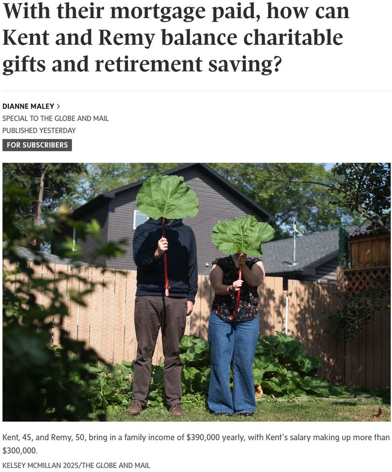 由于家庭收入高且住房成本低,肯特(Kent)和雷米(Remy)一直慷慨解囊,过去几年,这对加拿大中产夫妇每年捐款约5万元。如今,由于房屋抵押贷款已还清,他们计划将捐款翻一番,每年捐10万。