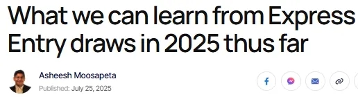 从2025年1月1日到7月24日,加拿大共举行了27次快速通道抽签。