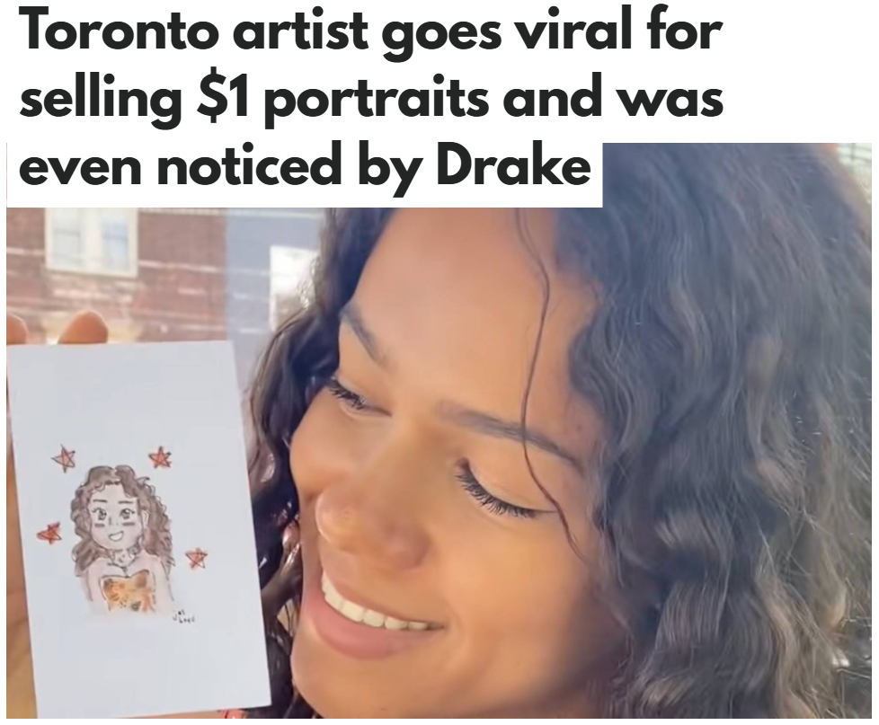 说起今年夏天的奇妙事儿,一位多伦多的21岁妹子Jas Boyd,真是把“摆摊”玩出了新花样!   图源:TikTok/Instagram   Boyd是皇后大学(Queen's University)生物专业的学生,但今年暑假她放下课本,背起画板,跑到Trinity Bellwoods公园,以1加元的超低价格为路人画“萌萌肖像”。没想到,她的作品迅速走红,火遍TikTok,甚至还被多伦多说唱巨星Drake点赞关注!   图源:TikTok   Boyd在接受blogTO采访时表示:“这真是个惊喜,我完全没有预期。第一条视频开始受关注后,很多人都被这个活动所启发。这真的激发了一波艺术和社区的热潮。”   Boyd从小就喜欢画画,在疫情封锁期间,她每天都宅在地下室里画画,尝试不同的风格。   “那是我人生中最美好的一年之一,”她解释道。   图源:TikTok   后来某天,她回忆起几年前去波士顿时见过的一个街头艺术家,那位艺术家也提供超便宜的肖像画——灵感一下子来了!   “我当时想,多伦多也该有这么有爱的事情!”她告诉blogTO。   于是,学校放暑假期间,她决定尝试一下这个实验。   图源:TikTok   “我想我没什么可失去的,就带上我的折叠椅,坐火车过去,然后开始画画。”她在公园的第一天很安静,只画了15幅肖像,但视频一发出,瞬间爆火。   Boyd有次一天画了75幅肖像,8个小时没停,每人5分钟,效率满分!大家都很惊讶:“只要1块钱?真的假的?”   图源:TikTok   她笑着说:“我尽量让这成为一次完整的体验,我不仅画,还和大家聊聊天,分享生活趣事,真的很有趣。”   Boyd计划整个夏天都在公园“摆摊”画画,等天气变冷后,或许会考虑接一些委托画作。但无论如何,她的热情永远在线。   她特别强调,这个活动不是为了赚钱,而是为了连接人与人之间的关系和留下美好回忆。   “这不是为了钱,而是为了艺术和社区。如果你想来聊聊天,画幅肖像,我的大门永远为你敞开。”   你想去打卡吗?
