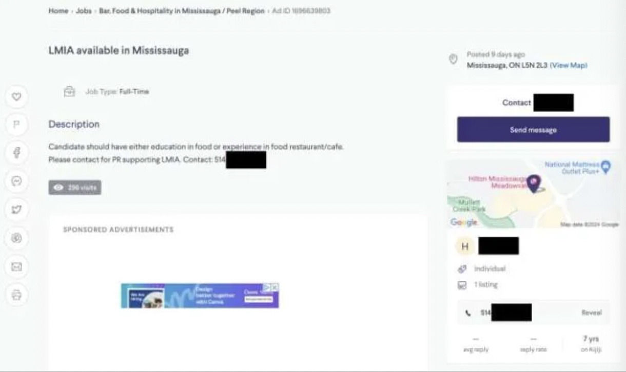 CBC刚刚曝光印度男子花钱移民到加拿大工作的黑幕,紧接着又爆出“买工作黑幕”。 记者伪装成一个希望在加拿大工作并获得永久居民身份的国际学生,在Kijiji上看到有人“出售”工作,于是就打电话咨询。对方询问是否需要“带LMIA的工作,还是仅仅需要没有工作的LMIA”,不到5分钟就给出了价格。 LMIA,即劳动市场影响评估,是联邦政府向雇主发放的一份文件,允许雇主在证明无法找到加拿大人或永久居民填补职位后,雇佣外国工人。这些职位不仅允许外国人在加拿大合法工作,还增加了他们成为永久居民的机会。随着联邦政府宣布从明年开始减少永久居民名额,这些许可证可能会变得更加抢手。 根据《移民和难民保护法》,向外国工人收取LMIA费用是违法的。但悲哀的是,很多人知法犯法。 图源:CBC CBC团队追踪了数十名卖家,上述卖家就是其中一位。 他们一直在Facebook Marketplace和Kijiji上继续发布这些职位,声称可以提供“真实”职位或“虚假”职位的选择,并附带相关文档,如伪造的工资单和税务单据,以提交给联邦当局作为加拿大工作经验的证据。 当时,卧底记者表示自己没有任何与特定技能LMIA职位相关的工作经验,她仍然被推荐了LMIA批准的工作机会,价格在25,000到45,000加元之间。 随后,卖家解释了卧底记者如何支付以被加入到雇主的工资单中,但提前声明实际上没有可用的工作。 这些交易中有些明确包含了“雇主费用”,高达27,000加元,尽管雇主被禁止向外国国籍人士收取任何招聘费用。 另一位卖家表示,尽管没有真实的工作,最初的费用中将包含3,000加元,用于在招聘网站上发布职位,“以表明我们已经尽力从现有人才库中招聘,但没有找到任何永久居民或加拿大公民”,这是雇主在获得LMIA之前的要求。 这些交易明显违反了LMIA的最初目的。 历史上,农场、温室以及鱼类和海鲜加工厂的工人中,有更高比例是通过LMIA被雇佣的。 图源:CBC 多位移民律师表示,支付这些交易的临时外国工人和出售这些交易的个人都可能因误导或协助误导而受到指控,这违反了加拿大移民法。如果罪名成立,违法者可能面临高达10万加元的罚款和最长五年的监禁。 移民专家指出,许多外国工人可能并不知道这些交易是非法的。但参与这些交易的移民付出了最高的代价,不仅损失钱,还因为他们在犯罪中扮演了角色。如果他们举报这些计划,他们面临被驱逐出境和五年禁止入境加拿大的风险。 在七月到九月之间,CBC的调查团队记录了125多个在线广告,这些广告在17个加拿大城市中宣传LMIA工作许可或LMIA批准的工作,卖家自称是个人、招聘机构或受监管的移民顾问。 在政府采取限制措施后,提供现金换取LMIA职位的在线广告数量显著增加。在七月,CBC记录了29个相关广告;到九月,这一数字已经超过三倍,增至97个。 几乎四分之一的广告位于以移民为主的安省布兰普顿Brampton市。 在八月底,加拿大就业与社会发展部(ESDC)宣布,将通过拒绝处理主要城市的劳动市场影响评估(LMIA)来减少临时外国工人的数量,特别是在高失业率的地区,除非是在如医疗保健和建筑等劳动力短缺的行业。 然而,这些行业在CBC/IJF于九月记录的广告中仍然被推广。例如,一则在9月4日发布的广告宣传“建筑和酒店业”的职位,并附有一行印地语,声称可以“有工作和没有工作”地获得LMIA。 九月,卧底记者联系在线卖家时,仍然在几分钟内得到了购买高达40,000加元的LMIA批准工作机会的机会。 不过,卖家变得更加谨慎,拒绝在电话中讨论安排的细节,也不愿意以书面形式发送任何信息。相反,卖家鼓励卧底记者亲自带现金到他们在大多伦多地区的办公室。 一位卖家拒绝以书面形式提供所提议方案的具体细节。他对卧底记者说:“如果我不信任你,我怎么能告诉你?市场上有很多事情发生……这可能会对我不利。” 根据加拿大统计局的数据,国际学生、临时外国工人和寻求庇护者的数量从2021年的130万增加到今年第二季度的近280万。 移民律师Ravi Jain表示:“那么这280万人怎么办?这块蛋糕根本不够大……这就是为什么人们为了获得永久居民的额外积分而施加压力的原因。因此,外国人会去找那些不道德的人,购买LMIA。”