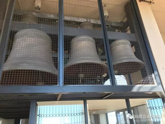 塔楼顶部的玻璃房间里,底层有一排类似钢琴般的按键,仿佛又连着二楼的大钟?这是什么机关呢?我和Tommy忍不住问志愿者,原来这还真的是一种特别的乐器,底楼的类似钢琴,弹奏并带动上面的大钟,发出嘹亮的声音,可以覆盖整个校园和校区。我们问,什么时候会有这样的仪式呢?答曰,一般类似各国政要或者总统参观、毕业典礼等重要场合。