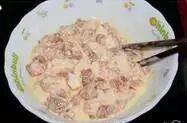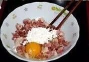 腌好的肉里打入1个鸡蛋,放入2勺生粉(没有生粉用玉米淀粉也可以)