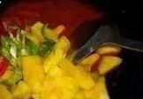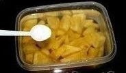 菠萝切成小块,用淡盐水浸泡10分钟后捞起