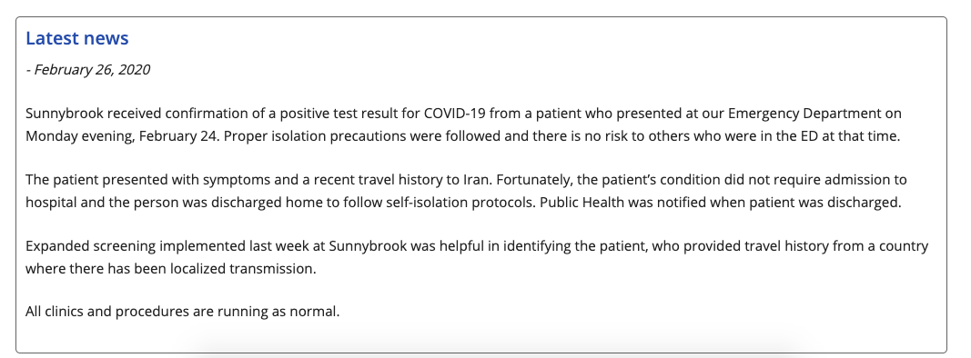 加拿大最新一例确诊为10天前从伊朗回多伦多的60多岁妇女。