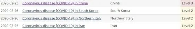 伊朗、意大利和韩国的风险系数均处于“二级”: