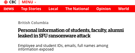 SFU透露:上周四,学校系统被勒索软件入侵致使数据泄露,