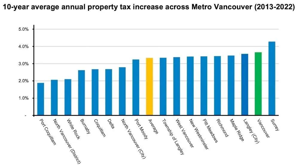 尽管周一素里市政府宣布在2023年将房地产税上调12.5%,考虑到素里的地税金额已经很低了,就算上涨12.5%,平均也只有3258加元,在大温地区其实也还是中游水平。