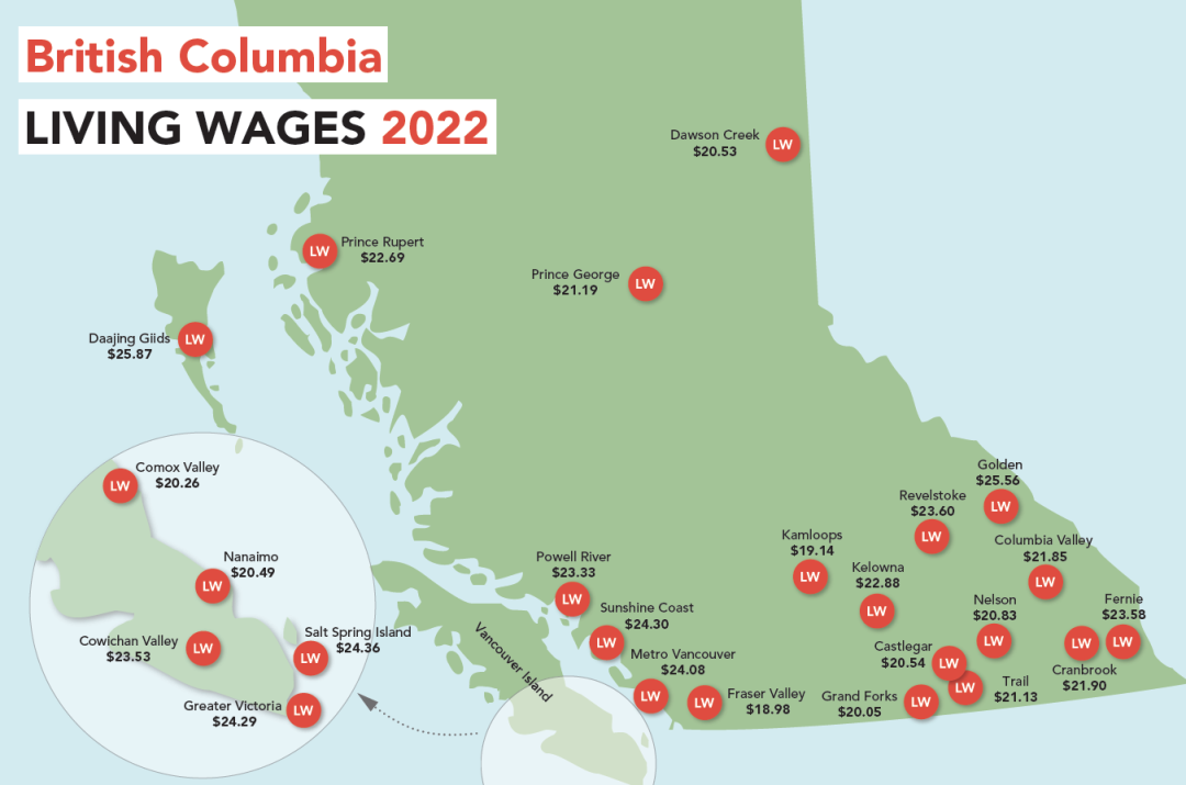 大温哥华地区的生活工资为每小时 24.08 加元,