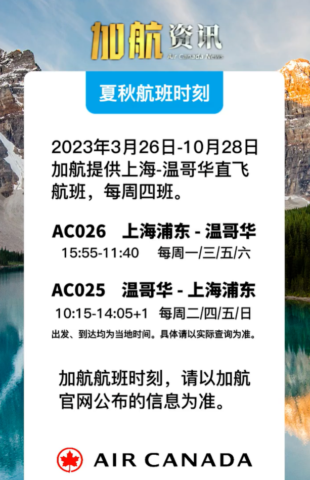 3月4日,中国民用航空局(CAAC)更新了本季(2023年3月26日至10月28日)国际客运航班的预批准飞行计划,增加了一些新的中国和加拿大的航班。
