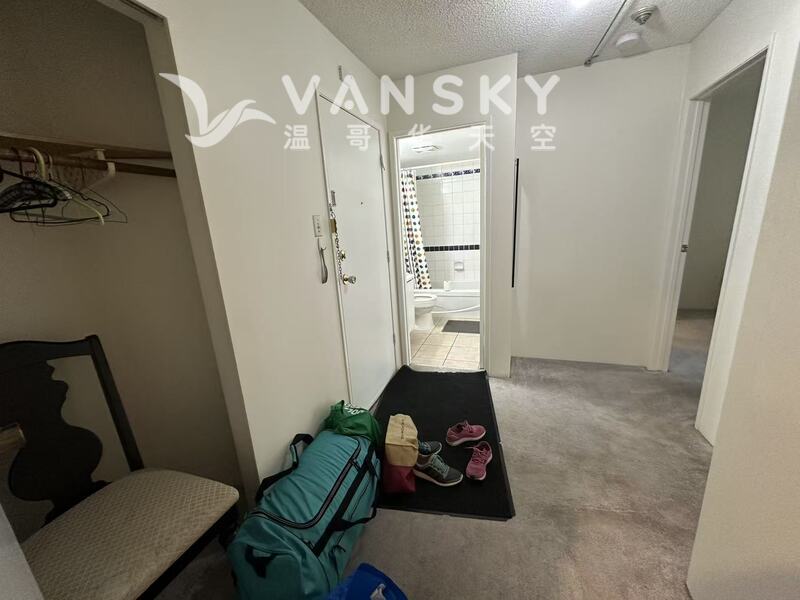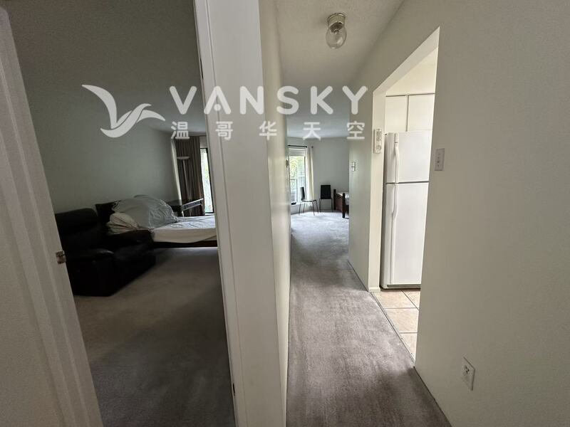 列治文,8640 Ackroyd Rd近价廉超市、公众市场、大统华,距天车站,步行6到8分钟。大一室一厅(可做二室一厅)加储藏室,一个室内停车位,租$2100/月,