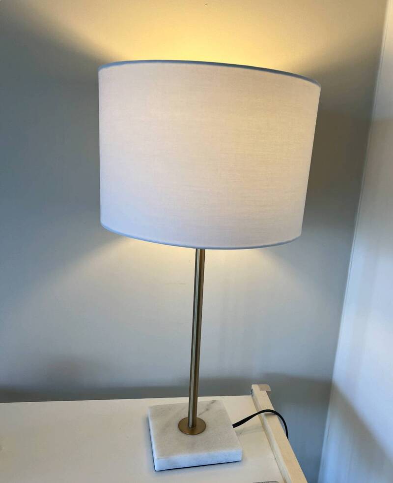 #4,近新大理石底座白色时尚灯罩的台灯$20.