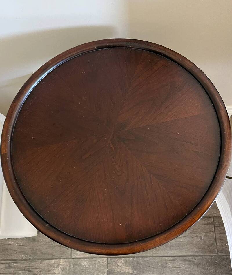 #6,棕色近新高级实木茶几购于Bombay, 托盘型设计防物品滑落,$98。