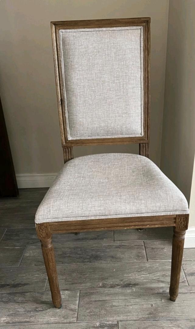 #8,实木米色布艺椅子无迹无破少坐,$10。