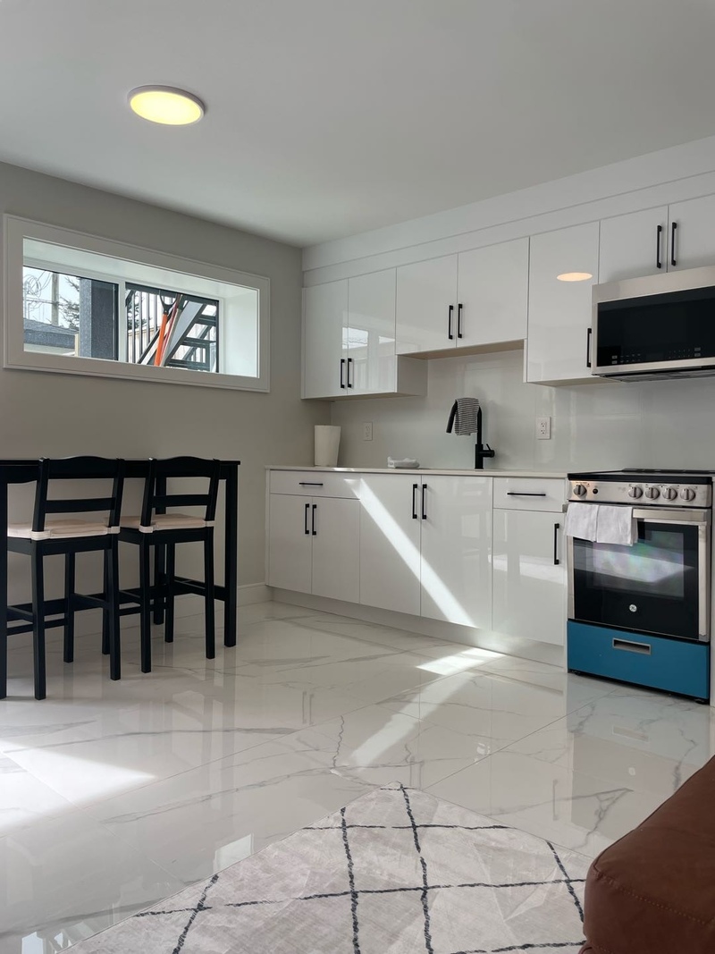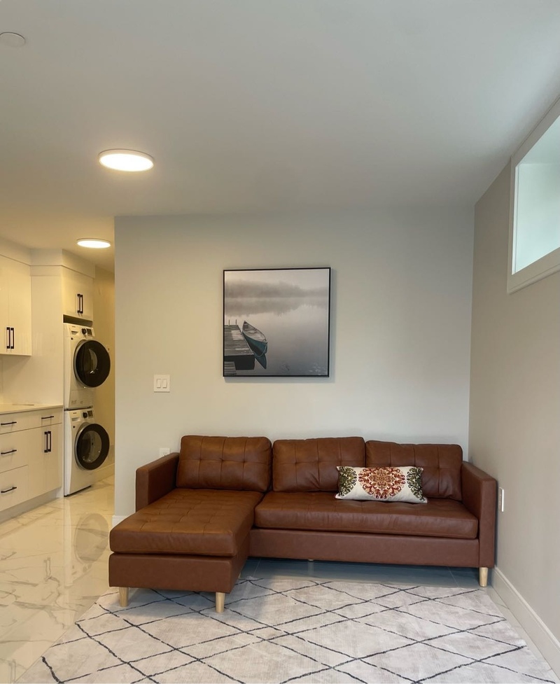 全新house的独立出入半地下两室一厅一卫 总面积800尺 干净宽敞舒适 品牌电器 距两大超市和 Starbucks 咖啡店都是步行5分钟到达 门口有公交车 15分钟直达UBC 去downtown也在15分钟车程内 这是西区中心位置 到哪里都很方便 附近中学有PW中学 Lord Bying 中学 和 Kisllano secondary 中学 也都是十分钟车程之内的距离 适合UBC学生 以及陪读家庭 或上班族小家庭 欢迎爱清洁的你 来到温馨的小屋