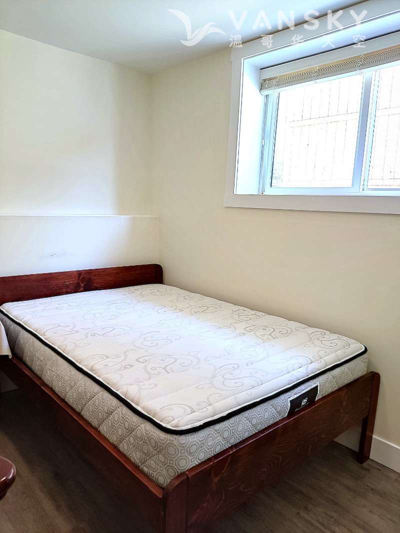 | 详情描述 5年近全新,近BCIT和大温名中学Moscrop中学(排名41/252), 独立出入两房一厅,半地下,干净明亮,环境优美,新电器,洗衣/干衣/暖气/水电/家具全包,交通购物方便,步行5分钟内可到达130,110,25,129路公车站,车程5分钟到Metrotown和丽晶,6分钟到Brentwood Skytrain 天车站。步行6分钟到BCIT,步行2分钟到Moscrop中学, 开车15分钟到SFU。附近有网红店京园牛肉面馆,寿司店,Subway 等餐饮。适合无烟无宠无大麻,爱清洁,少煮食,喜安静素质高的学生、正职人士租用。