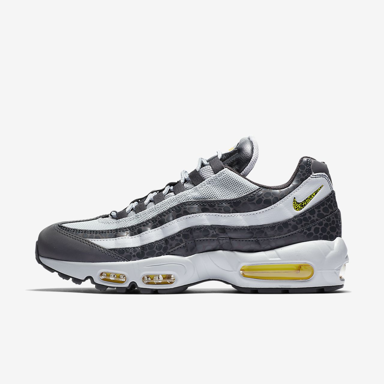 A running-inspired classic, the Nike Air Max 95 SE Men's Shoe blends a synthetic and textile upper with a graphic print for unmistakable style. Max Air units give you lightweight cushioning with every step.
