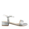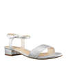 Add a glamourous look to your party ensemble with these women's Taxi silver Angela dress sandals. Ddesigned using a synthetic upper with a glittery finish and a crystal studded strap, these open toe sandals feature an adjustable ankle strap with buckle closure, and a durable outsole with a low block heel.