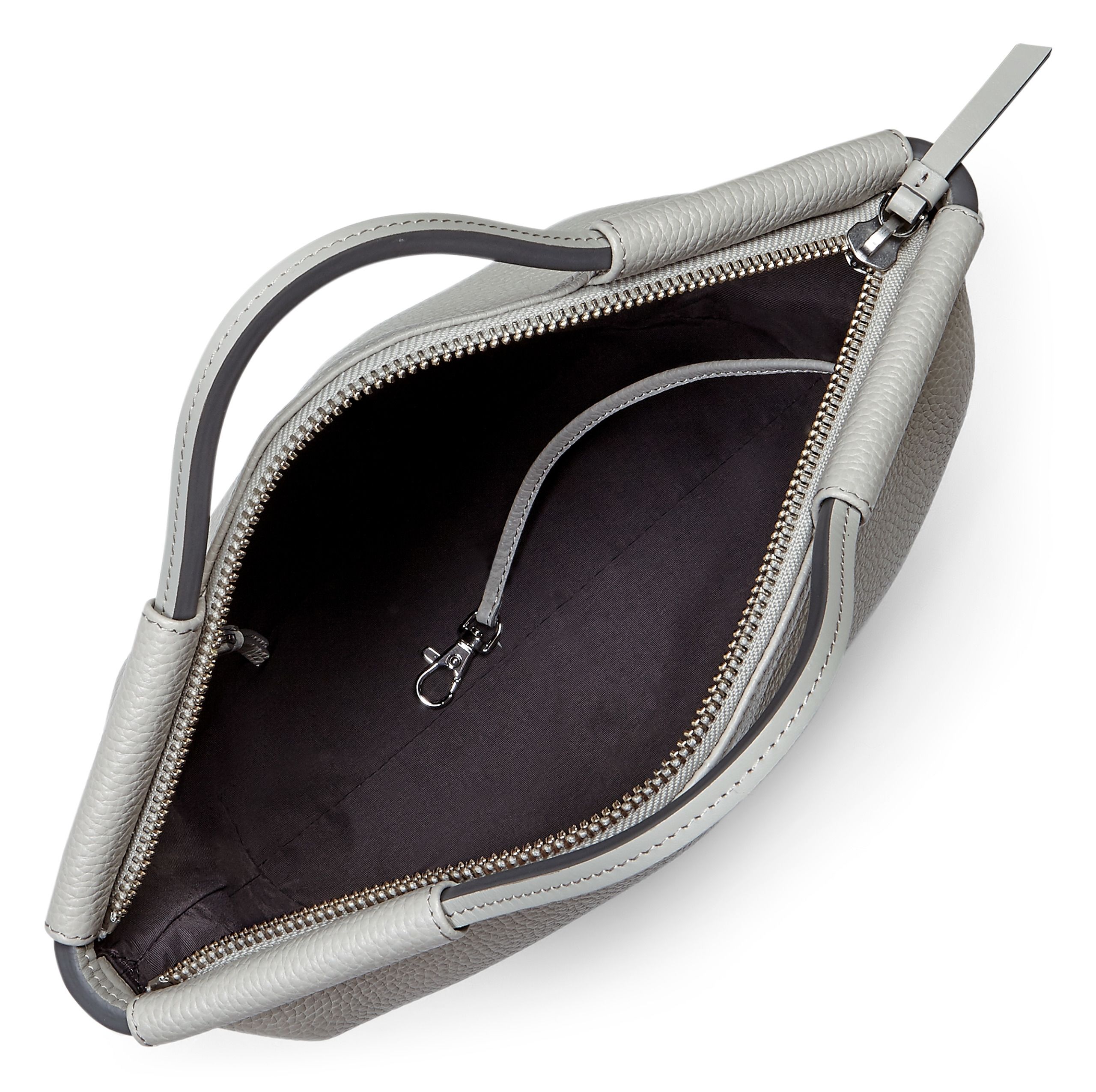 - Detachable, adjustable leather shoulder strap means you can carry by hand or across the body