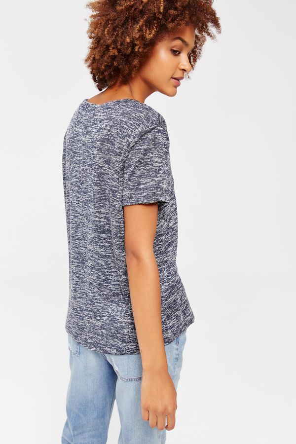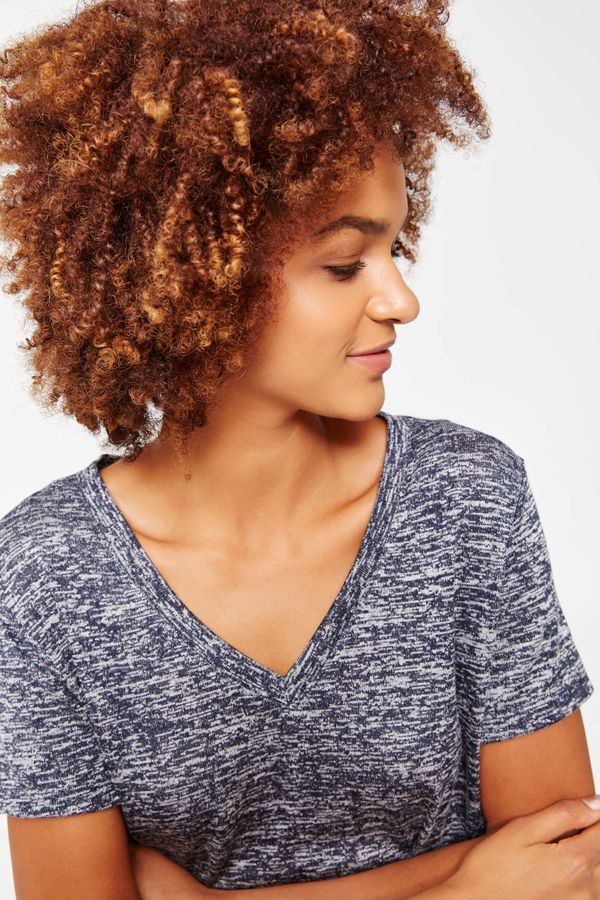 Knit t-shirt. Deep V-neck. Short sleeves. Loose fit. 48% viscose, 48% polyester, 4% spandex. Model is wearing size S.