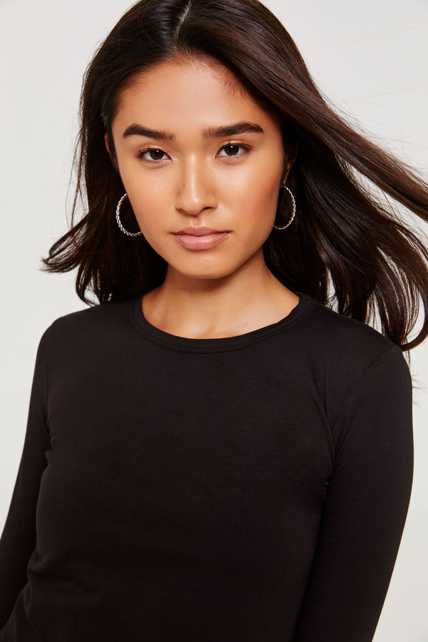 Exclusive piece from our Basic collection. Cotton cropped t-shirt. Crew neck. Long sleeves. Classic fit. 95% cotton, 5% spandex. Model is wearing size S.