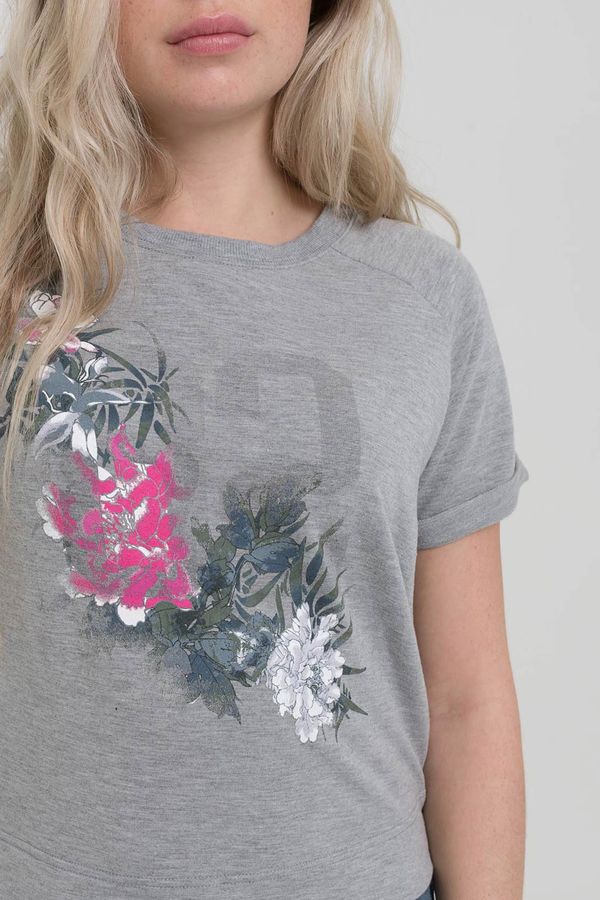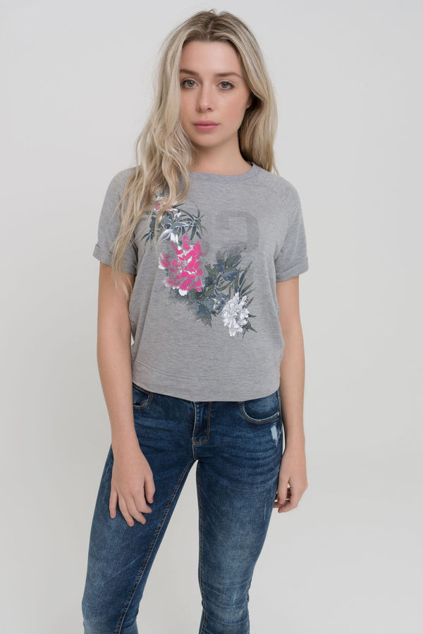 Exclusive piece from our Move activewear collection. Ribbed crew neck t-shirt. Short rolled sleeves. Elastic hem. Printed graphic. Terrycloth interior. 51% viscose, 47% polyester, 2% spandex. Model is wearing size S.