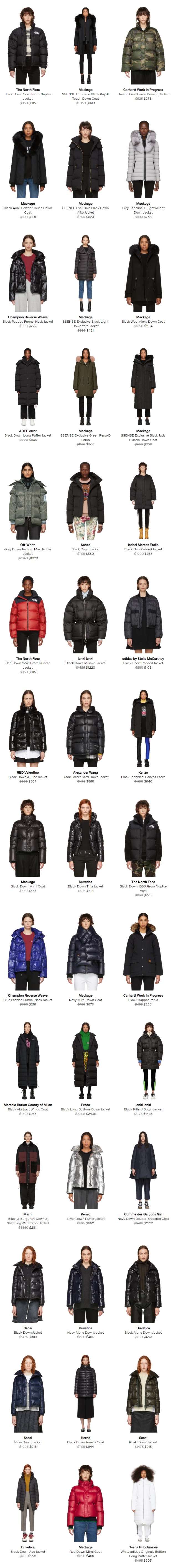 SSENSE网店销售,精选Kenzo、MiuMiu 、The North Face等潮牌羽绒服4折起,满100加元包邮加拿大,支持直邮中国,点击进入订购页面:女装羽绒服