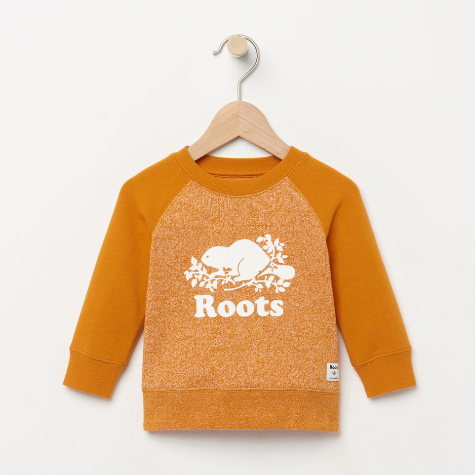 A Roots favourite, our Baby Original Crewneck Sweatshirt is made with our ultra-soft fleece and features our flocked Cooper Beaver logo.
