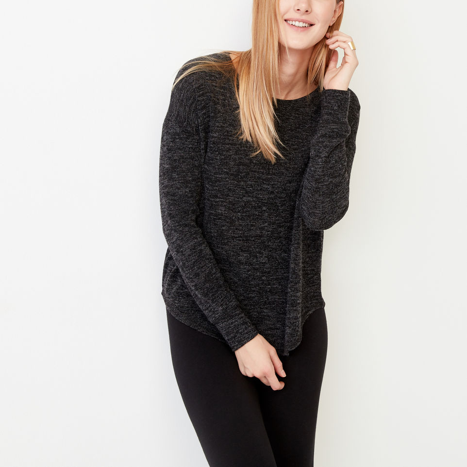 A cozy essential for every wardrobe, our Elk Top features a curved hem, cuffed sleeves and drop shoulders.