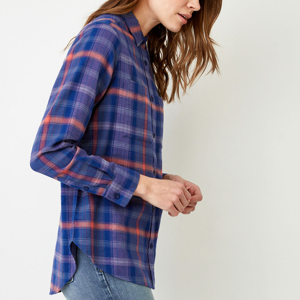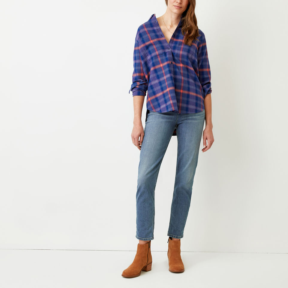 Made from cozy cotton flannel, our Nora Flannel Shirt features a button-front style with chest pockets. A relaxed fit and high-low hem refresh its classic look.