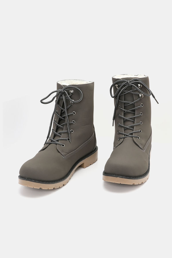 Winter ankle boots. Upper lacing. Faux sherpa lining. 3M Thinsulate insulation. Track rubber sole.