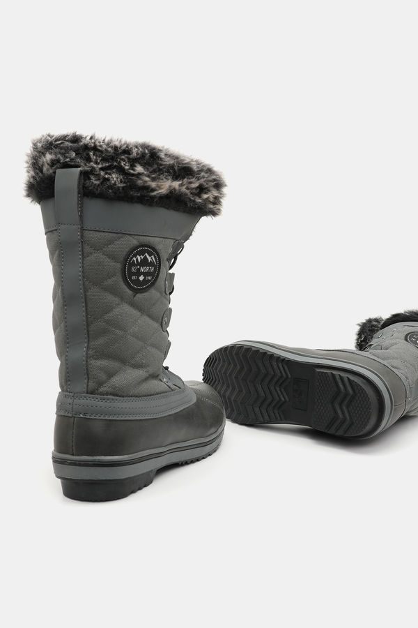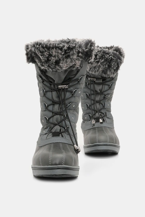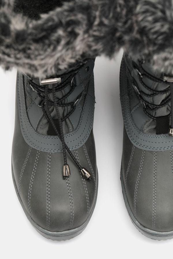 Mid-calf waterproof winter boots. Upper lacing. Faux fur trim. Faux sherpa lining. 3M Thinsulate insulation. Track rubber outsole. Lab-tested up to -25˚C.