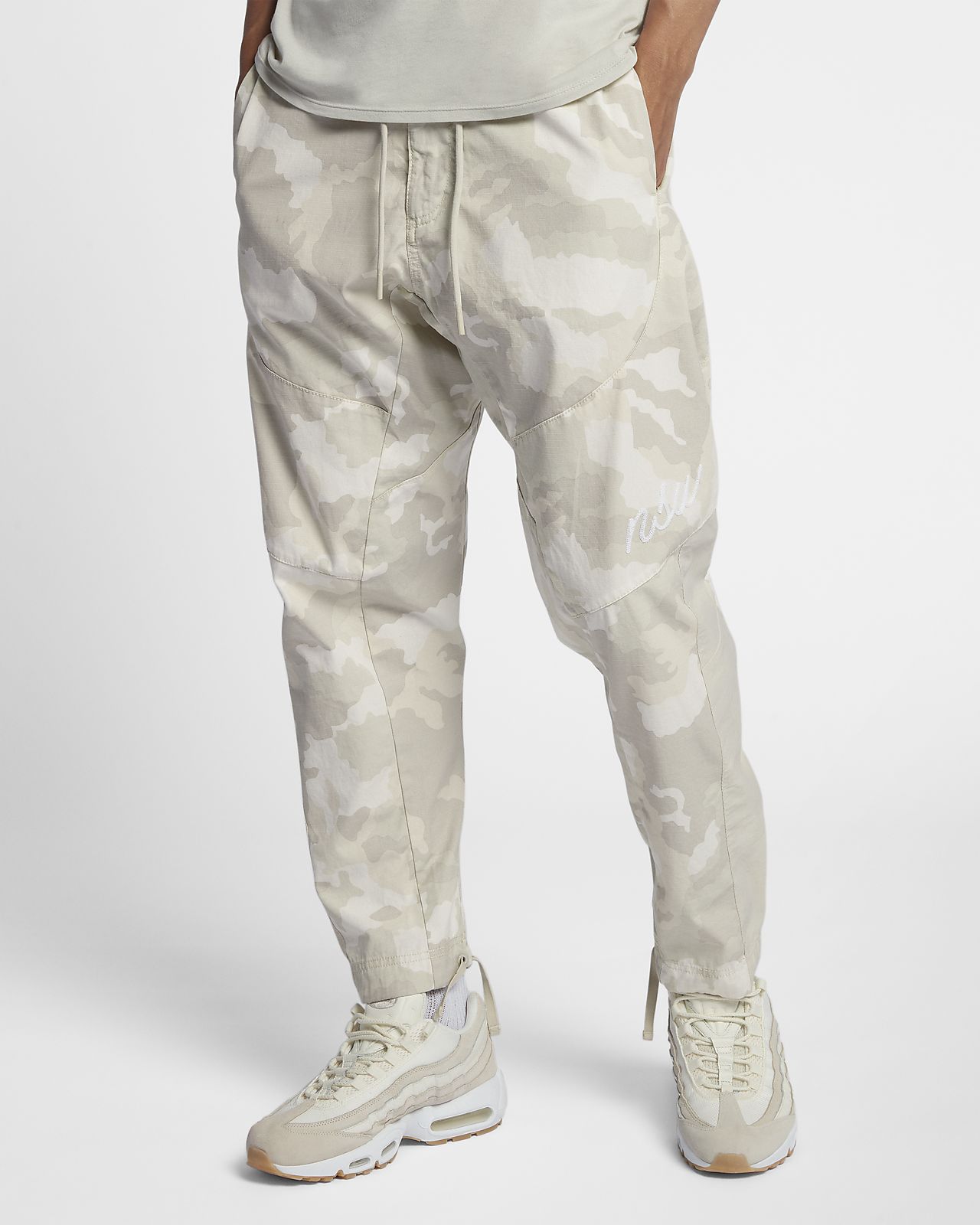 The Nike Sportswear NSW Men's Woven Camo Joggers pair lightweight fabric and a camouflage print for a relaxed feel and street-inspired style.