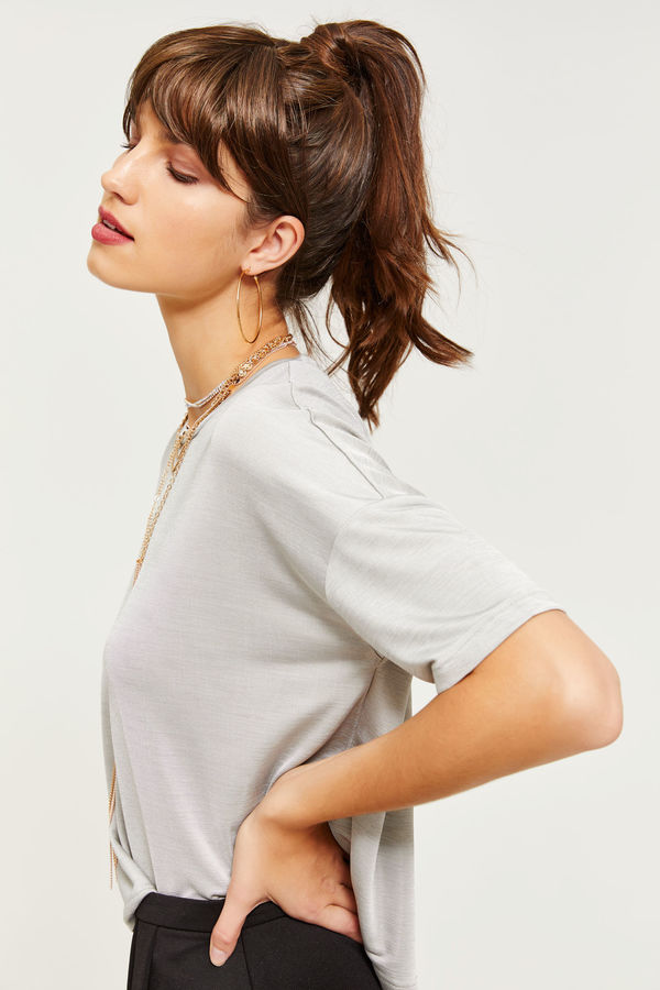 Exclusive piece from our Party collection. Fine-knit t-shirt. Crew neck. Short sleeves. Dropped shoulders. Boxy cut. 94% polyester, 6% spandex. Model is wearing size S.