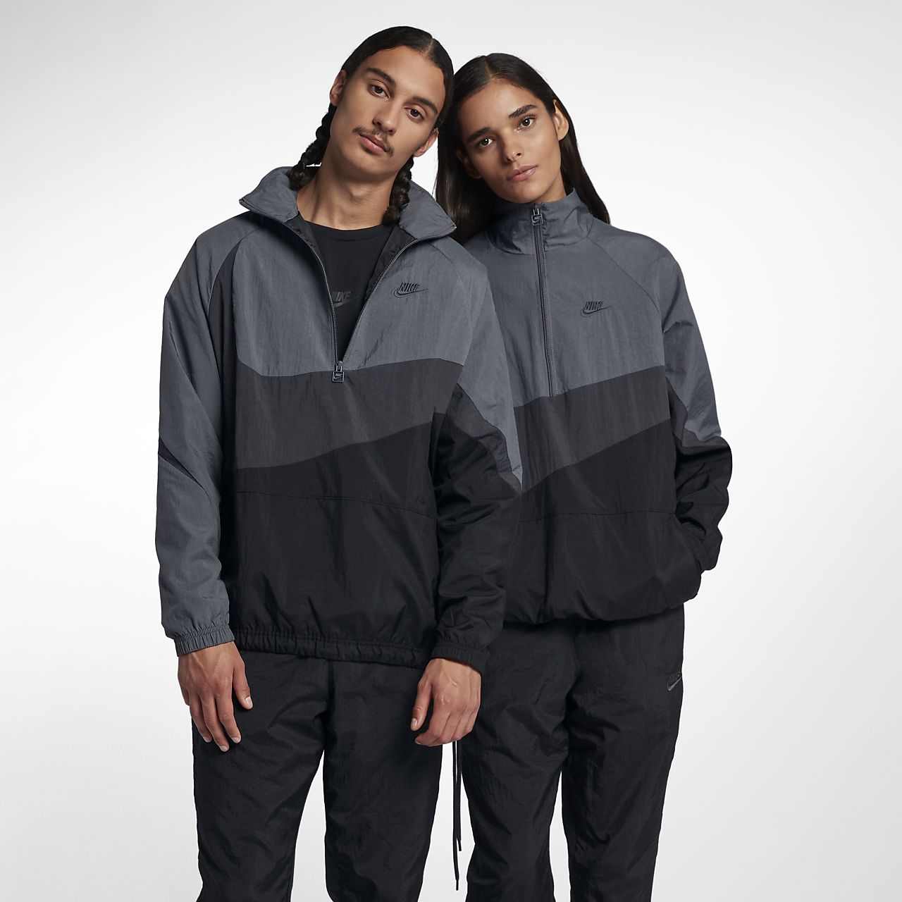 The Nike Sportswear Jacket features raglan sleeves for natural range of motion and a packable pocket bag for easy carrying.