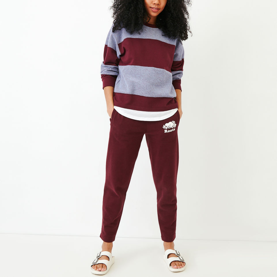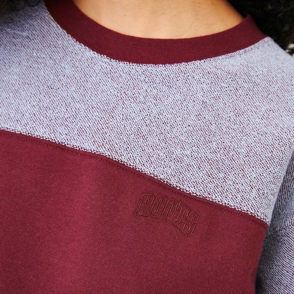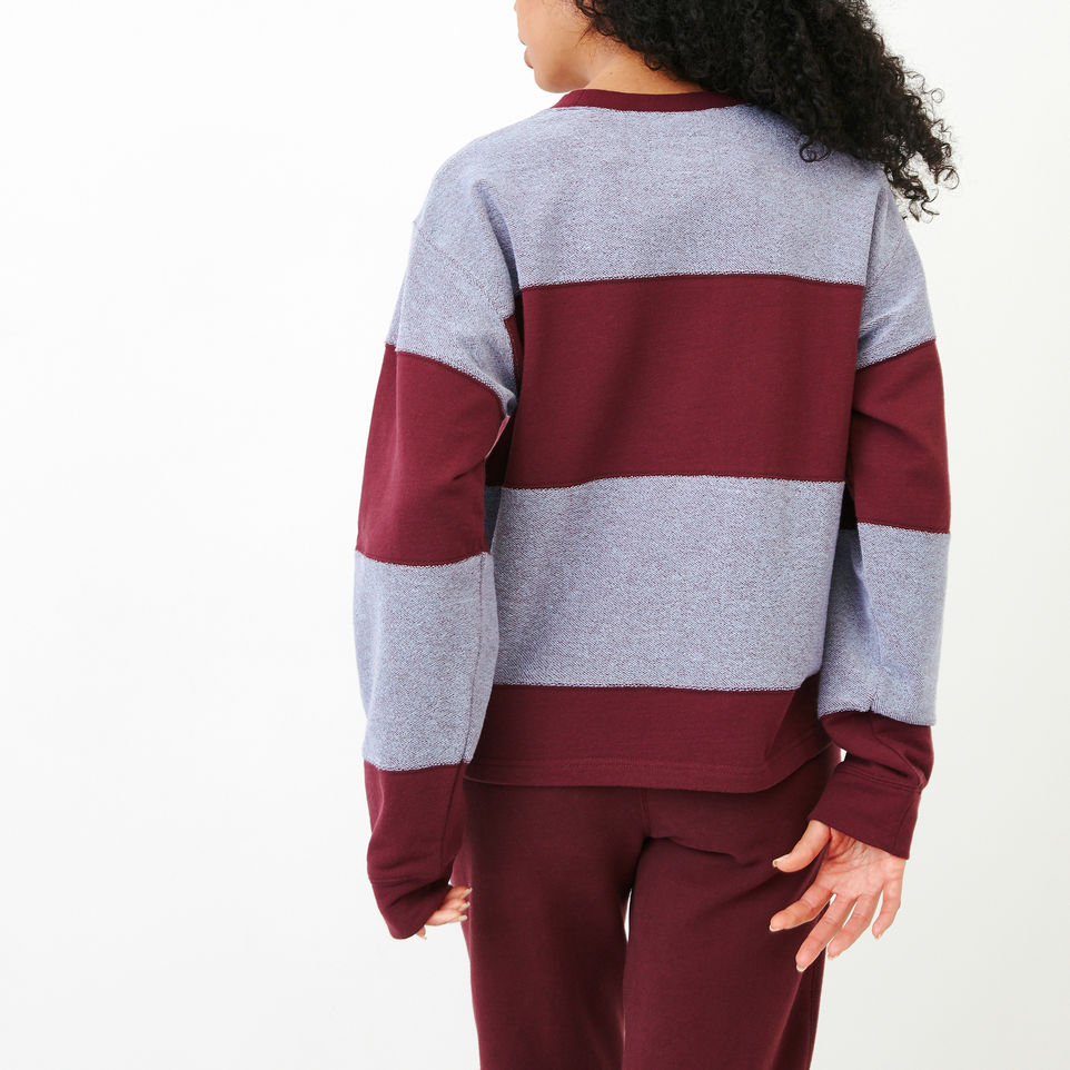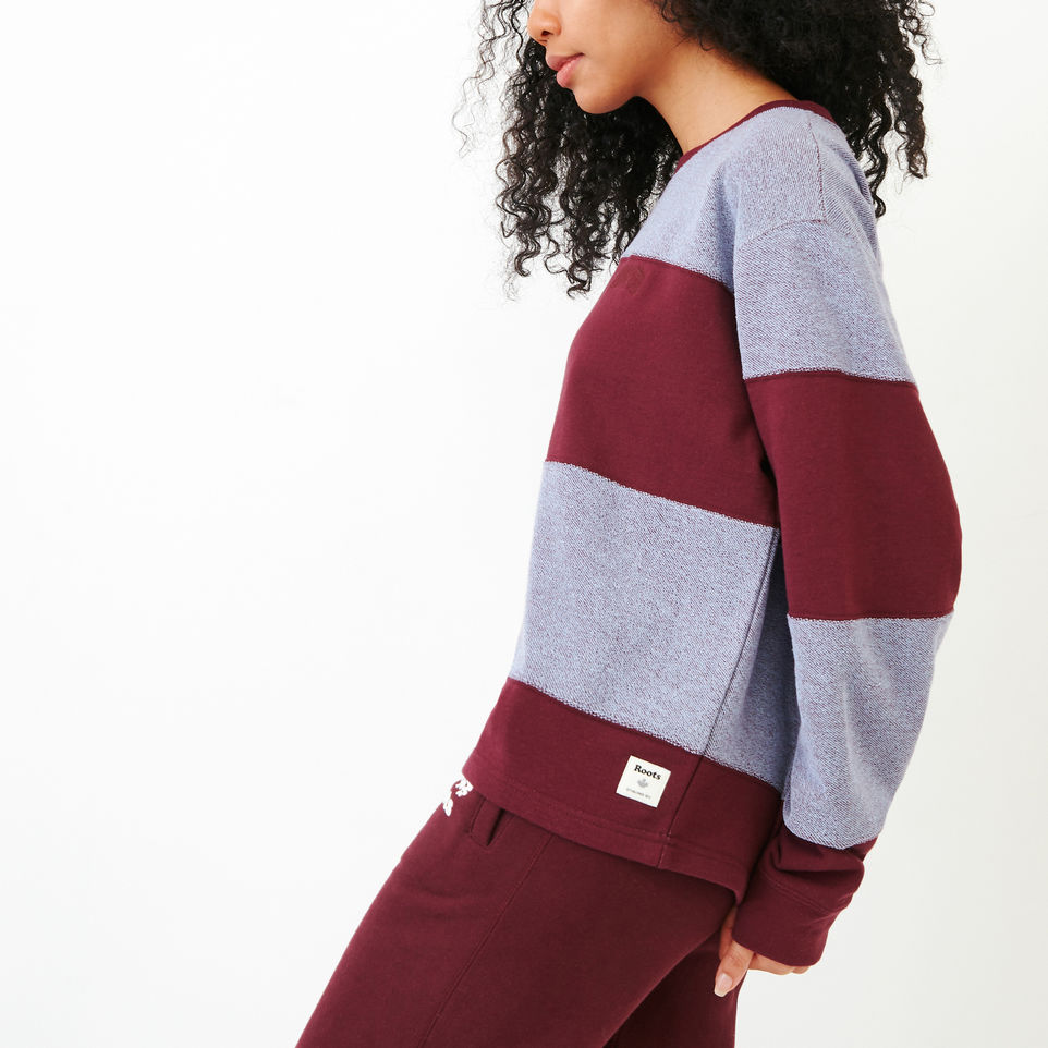 A cropped, crewneck style, our Rugby Stripe Top is made with two-toned french terry for a comfy pop of colour, cut-and-sew stripes, and our Roots arch.
